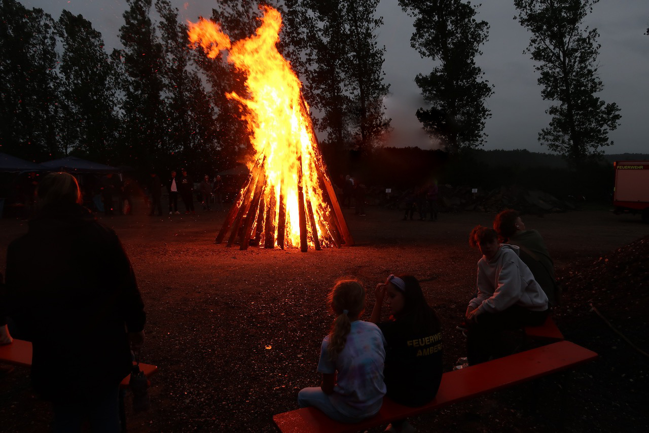 Von "Sommer"sonnenwende konnte heuer keine Rede sein. Um 18 Uhr, zu Beginn des Johannisfeuers, schaute es noch so aus, als müssten wir, die KjGler und Ehrenamtlichen alleine feiern. Zwei Tage nach Johanni durfte wieder ein großes Johannisfeuer gemacht werden, weil durch den Regen die Waldbrandgefahr gebannt war. Unter Aufsicht der Feuerwehr Amberg und Gailoh konnte pünktlich um 21 Uhr der von der KjG aufgeschichtete Haufen entzündet werden. Wir danken wieder für die Unterstützung der beiden freiwilligen Feuerwehren.